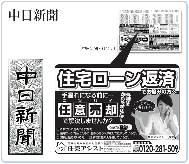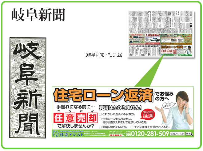 現在、岐阜新聞と中日新聞に定期的に広告をだしており、下記新聞広告でも任売アシストの活動をご覧