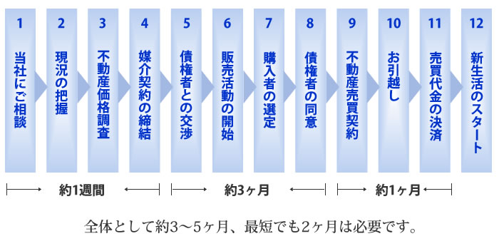 任意売却に要する期間(ご相談〜新生活スタートまで)は、お客様の状況により異なります。